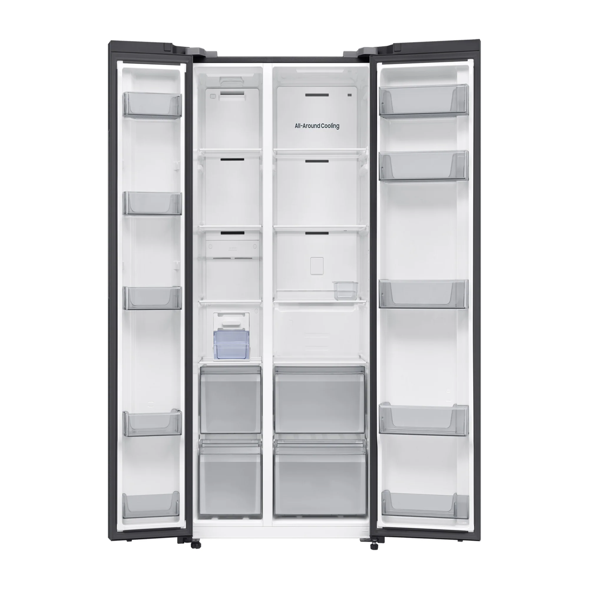 The Samsung Side By Side Refrigerator RS70F65Q1FA in Black Doi offers an impressive 655-liter capacity, making it an ideal choice for large families or those who love to entertain. Its sleek design features two spacious doors, providing easy access to both fresh and frozen foods. With advanced cooling technology, this refrigerator ensures that your groceries stay fresh for longer while maintaining an elegant appearance in your kitchen.