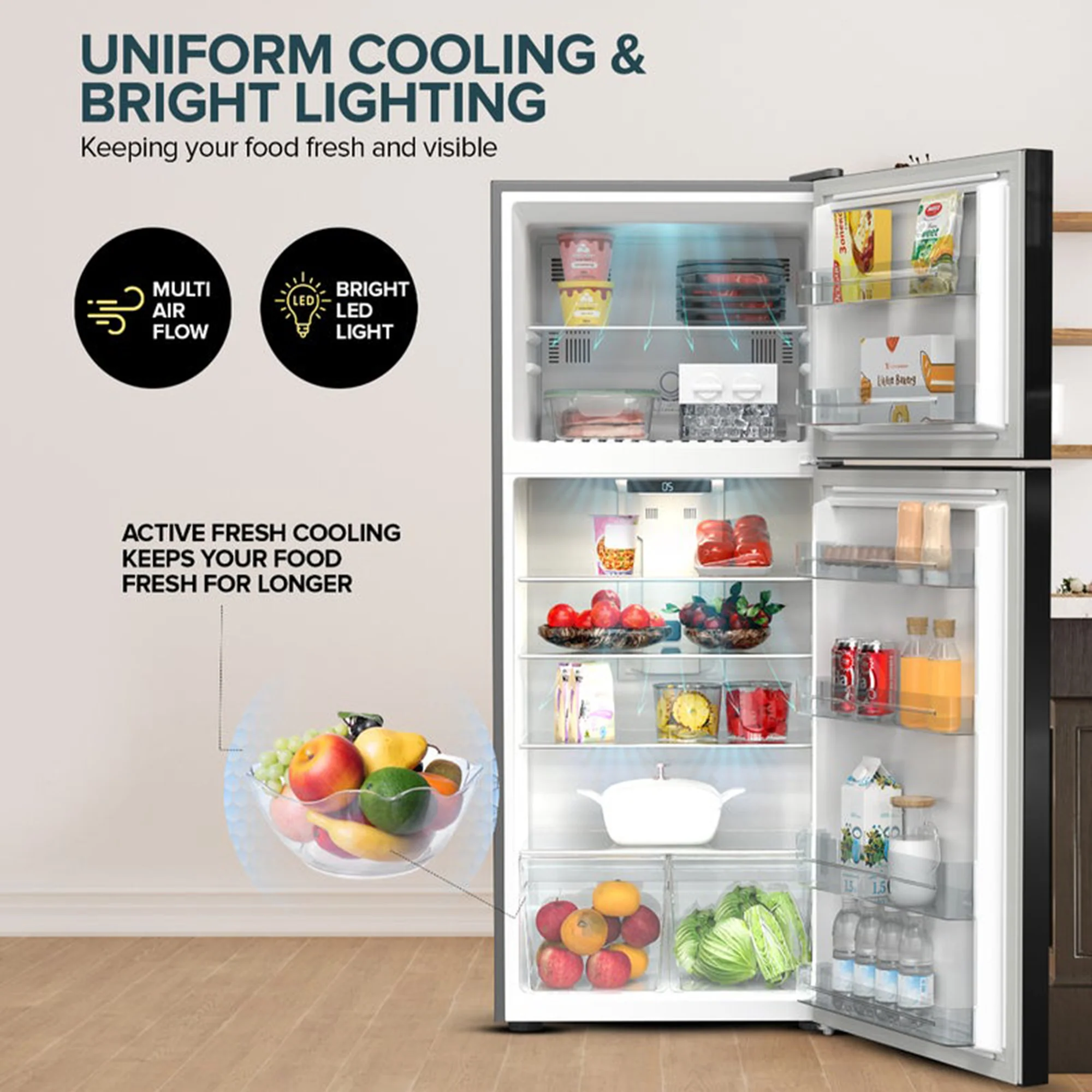 The Nikai NRF601FSSINV top freezer refrigerator is designed to provide large storage capacity and efficient cooling performance for modern households. With a generous 600-liter gross capacity, it offers ample space for groceries, fresh produce, and frozen items, making it ideal for families. The Total No Frost technology eliminates ice build-up and ensures hassle-free maintenance, while the Multi Air Flow system distributes cool air evenly to maintain consistent temperatures across all compartments. Equipped with an energy-efficient inverter compressor, it delivers quiet operation and optimized power consumption. The digital display allows easy control and monitoring, while its sleek design adds a modern touch to any kitchen.